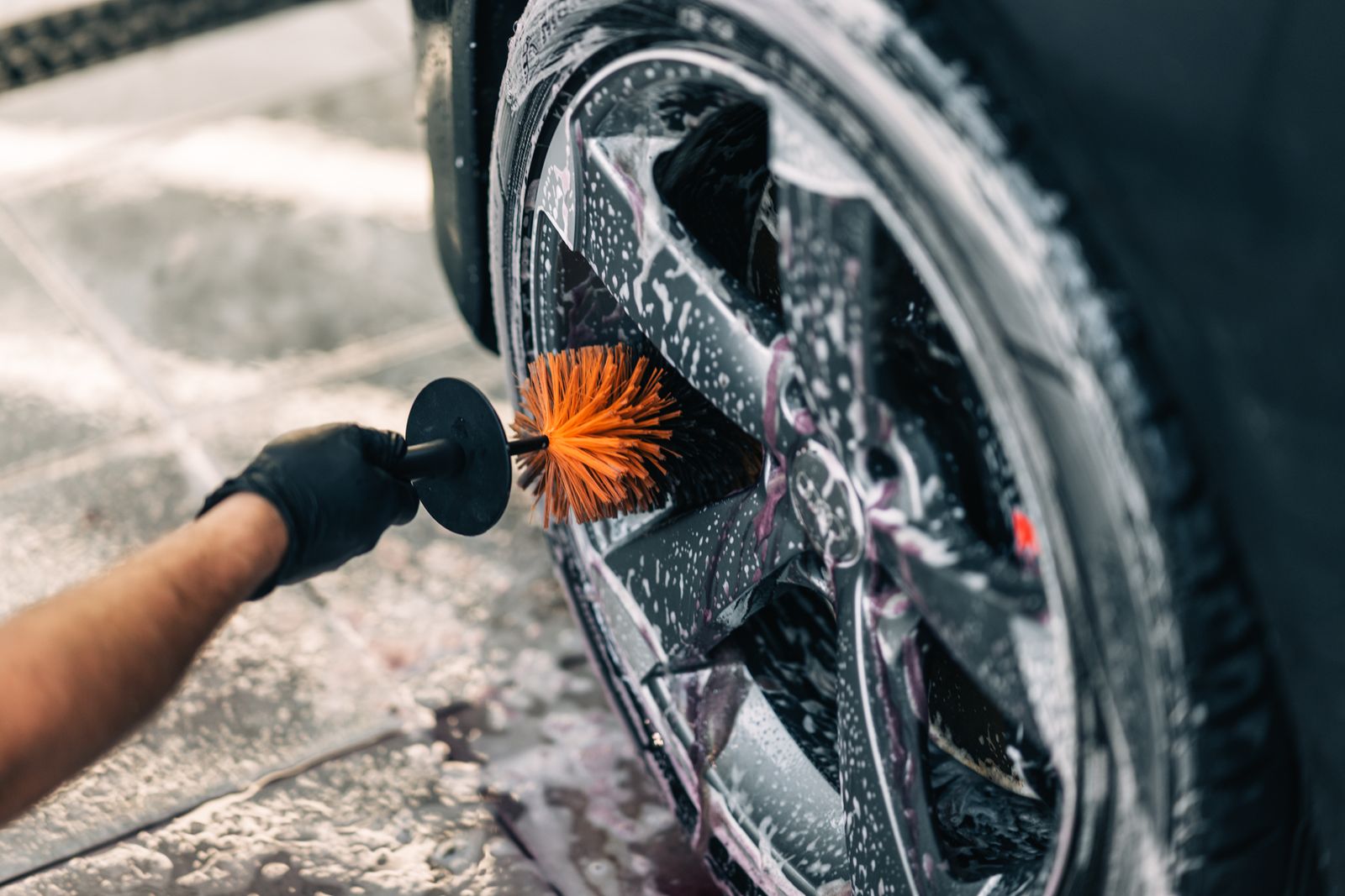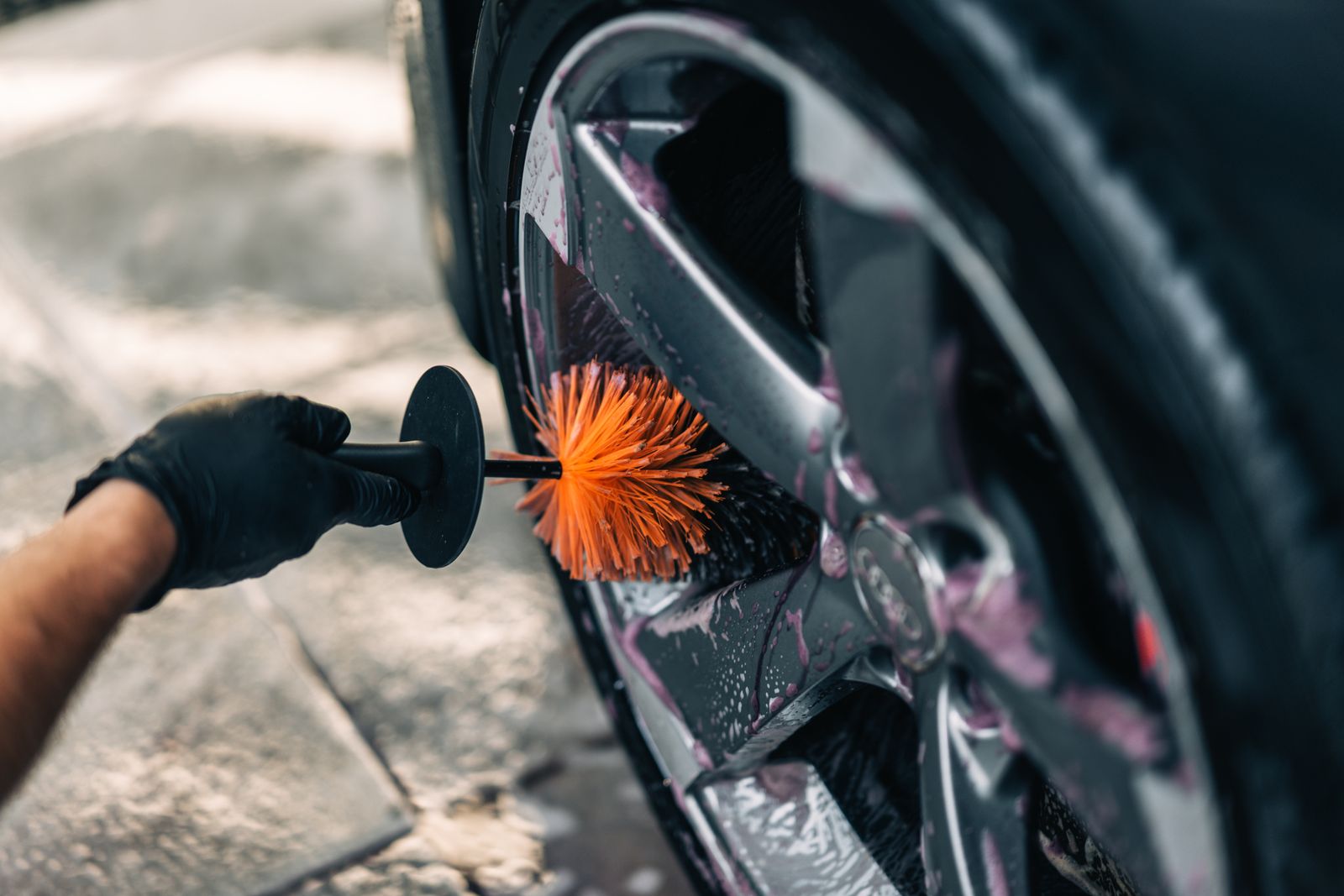 Przygotuj felgi — spłucz wodą, aby usunąć luźne zabrudzenia.