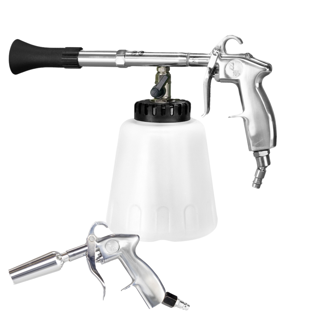 Kompletny zestaw dla profesjonalistów i entuzjastów detailingu. Idealny do intensywnego czyszczenia wnętrz oraz skutecznego przedmuchiwania trudno dostępnych miejsc. W zestawie pistolet czyszczący z metalowym wirnikiem na łożysku oraz pistolet przedmuchowy z dyszą Venturiego.