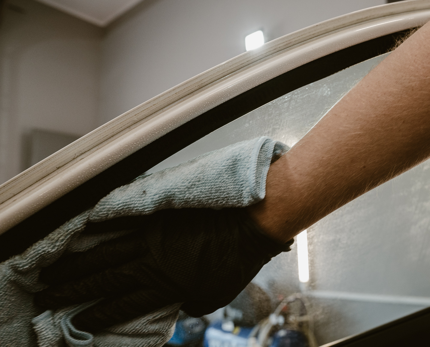 1. Spryskaj zabrudzoną szybę niewielką ilością płynu.