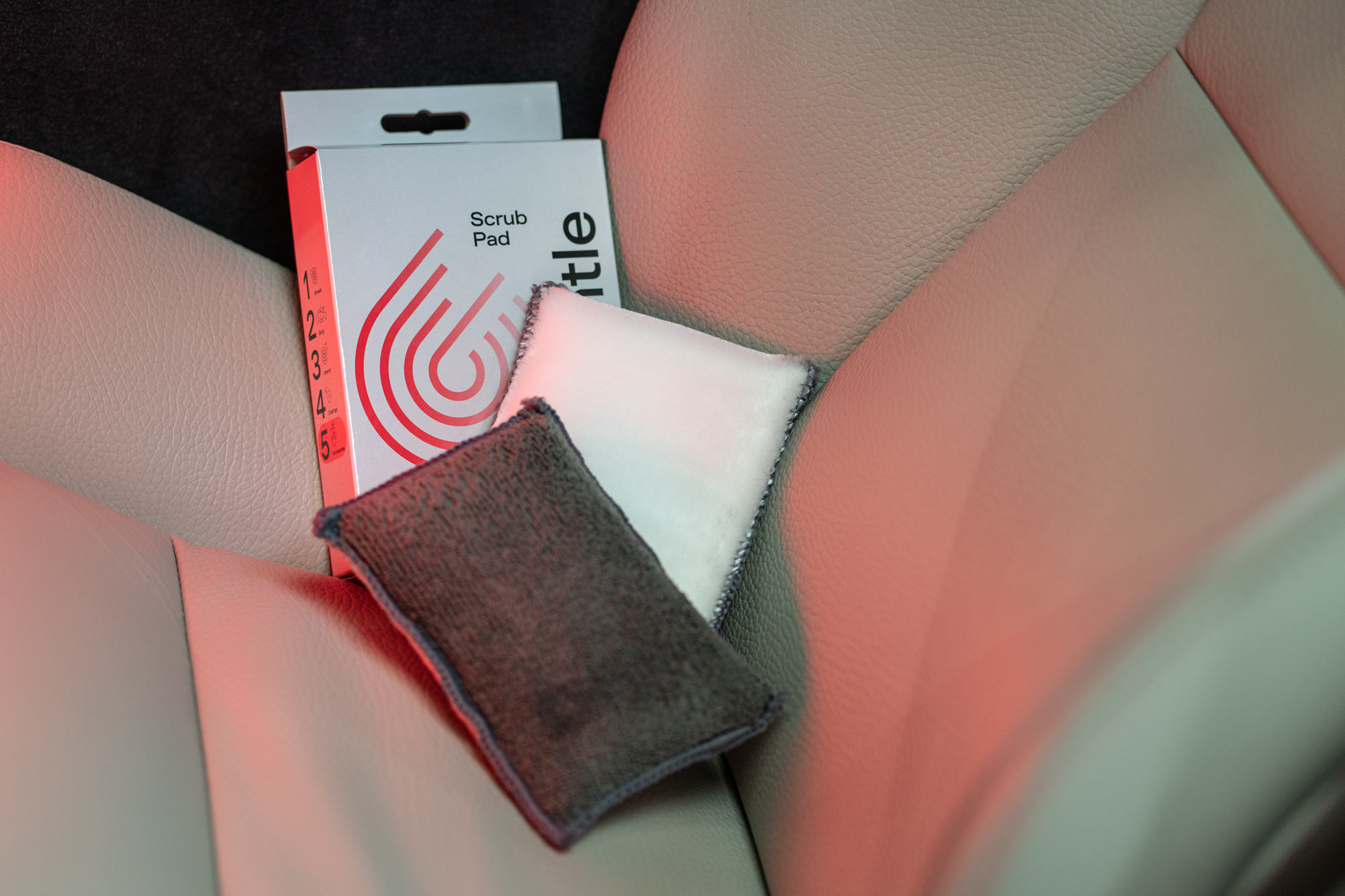 Cleantle Scrub Pad to dwustronny, chłonny pad do czyszczenia i pielęgnacji wnętrza auta. Łączy skuteczność szczotki z delikatnością mikrofibry, zapewniając bezpieczeństwo dla tapicerki, plastików i skóry. Wytrzymuje nawet do 300 prań przy odpowiedniej pielęgnacji.