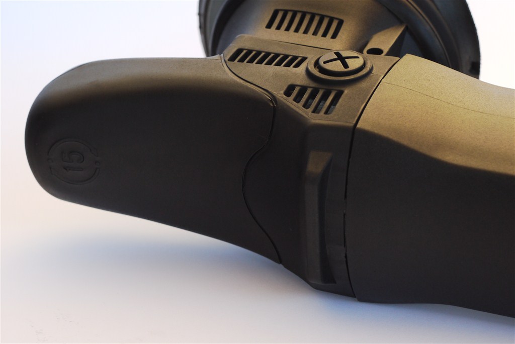 Evoxa HDC15 charakteryzuje się ergonomiczną obudową, w której zastosowano dłuższy i praktyczny przedni grip, powleczony miękką gumą. Tylną rękojeść również pokryto gumą, co poprawia chwyt i komfort pracy. Wygodna, szeroka stopka na grzbiecie polerki zapewnia stabilność podczas odkładania, eliminując ryzyko przypadkowego przewrócenia.