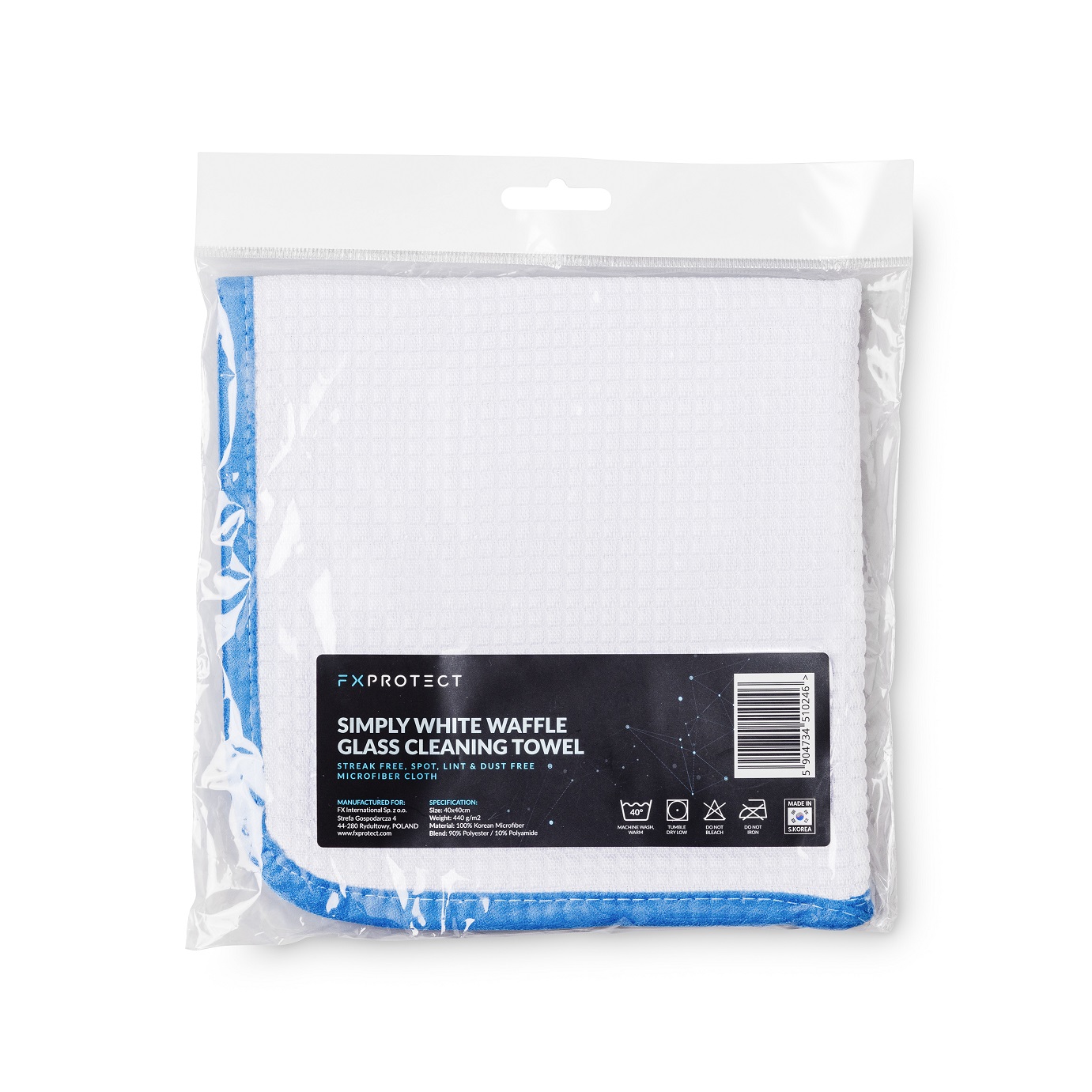 FX PROTECT Simply White Waffle Glass Cleaning Towel jest ściereczką idealnie przystosowaną do czyszczeni szklanych powierzchni. Posiada specjalny splot „waflowy” o wysokiej gramaturze 440g/m2. Innowacyjna technika tkacka sprawia, że mikrofibra świetnie ślizga się po czyszczonej powierzchni. Nie pozostawia smug ani mikrowłókien, co znacznie ułatwia pracę.