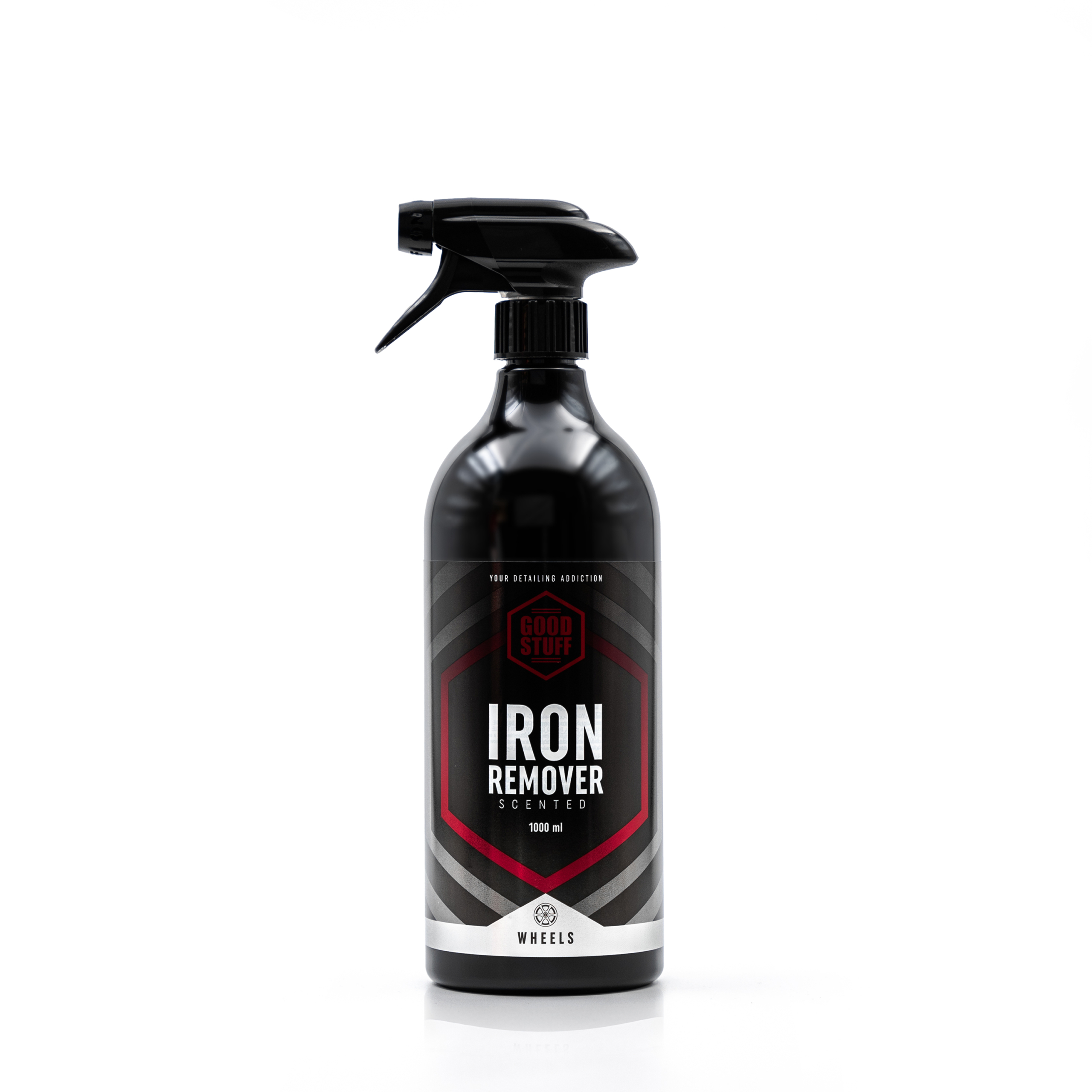 Good Stuff Iron Remover to silny płynny środek odkażający o neutralnym pH, opracowany w celu rozpuszczania cząstek żelaza, pyłu hamulcowego i opadów na kołach, kołpakach i dolnych panelach nadwozia. Reaguje chemicznie z zanieczyszczeniami żelaznymi, zmieniając kolor na ciemnoczerwony w miarę rozkładania osadzonego brudu, dzięki czemu idealnie nadaje się zarówno do regularnej konserwacji, jak i przygotowania przed detalami.