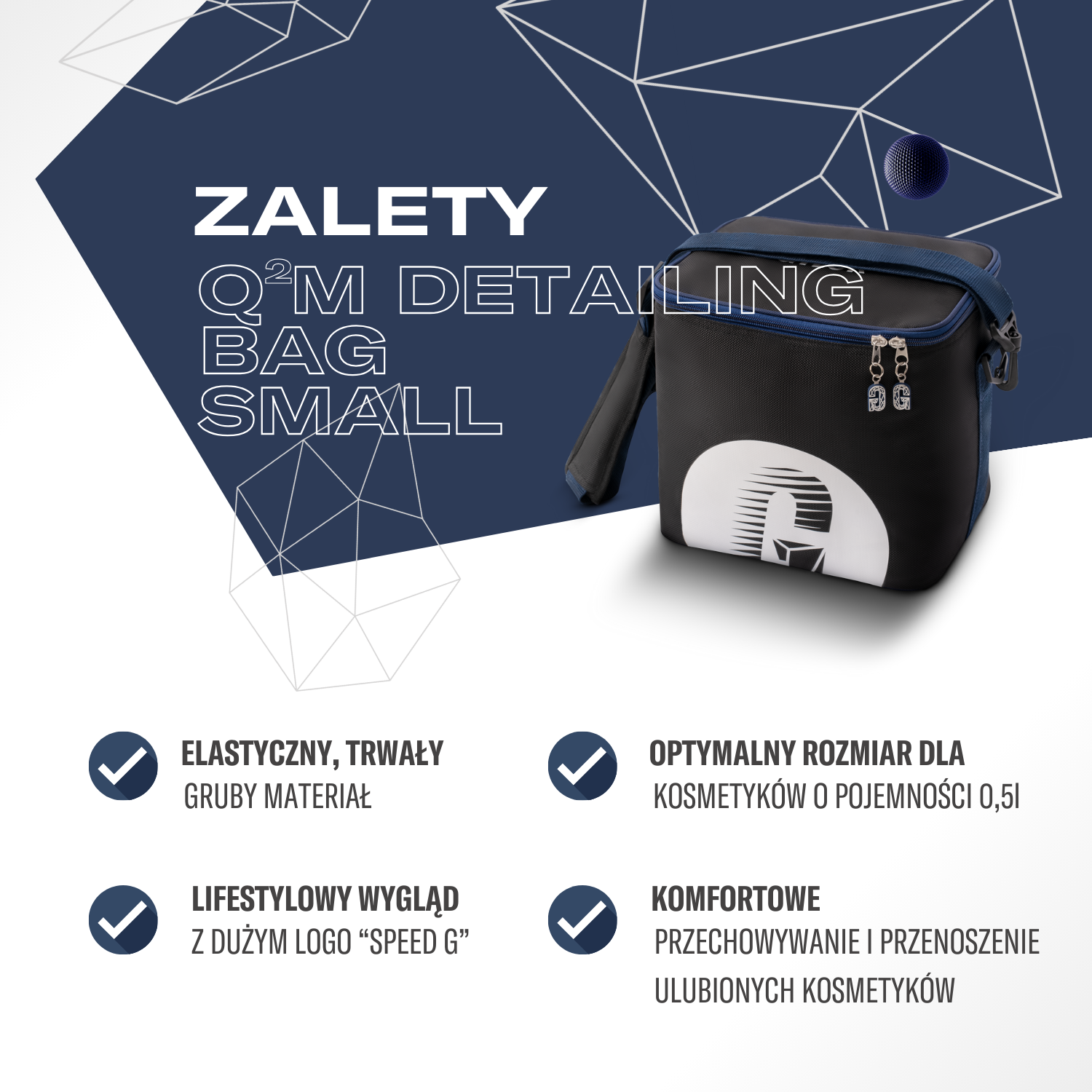 GYEON Q²M DetailingBag Small to solidna, kompaktowa torba do przechowywania i transportu kosmetyków samochodowych oraz akcesoriów. Wykonana z trwałych materiałów, zapewnia bezpieczeństwo zawartości i wygodę użytkowania – idealna zarówno dla pasjonatów detailingu, jak i profesjonalistów.