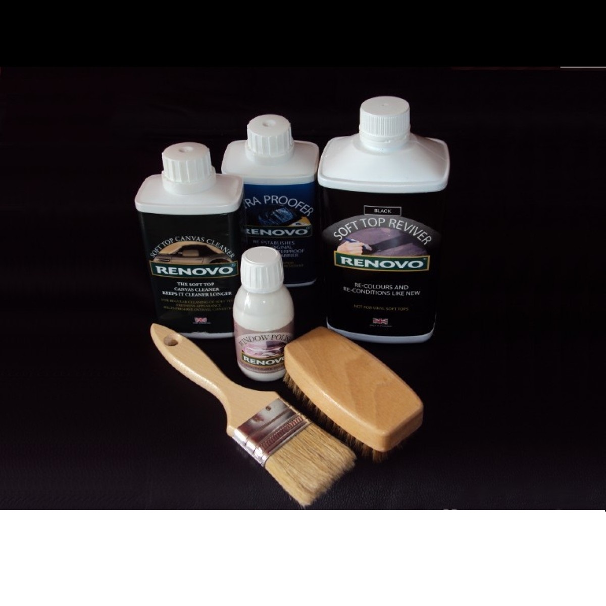 - RV1 – środek czyszczący (500ml) do miękkich dachów cabrio płóciennych, brezentowych oraz moherowych. Czyści, odświeża ogólny wygląd oraz poprawia ogólną kondycję miękkich dachów w kabrioletach. Bardzo skutecznie usuwa kurz oraz stary, zaschnięty brud, likwiduje pleń i czyści plamy. Jest bezpieczny dla tkaniny oraz nie powoduje przebarwień w kolorze materiału.