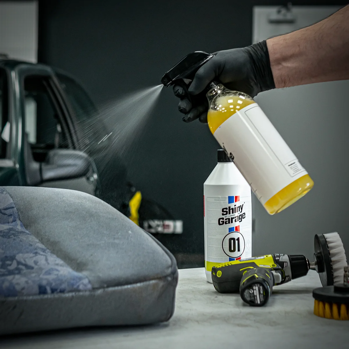Shiny Garage Carpet Cleaner to produkt przeznaczony do prania metodą ekstrakcyjną lub ręcznie wszelkich powierzchni tekstylnych (tapicerka samochodowa, boczki drzwi, welurowe dywaniki, wykładziny itp.). Może być stosowany również jako odplamiacz. Unikalna formuła penetrująca zabrudzenia pozwala szybko i skutecznie wniknąć w głąb tkaniny i odseparować brud od powierzchni.