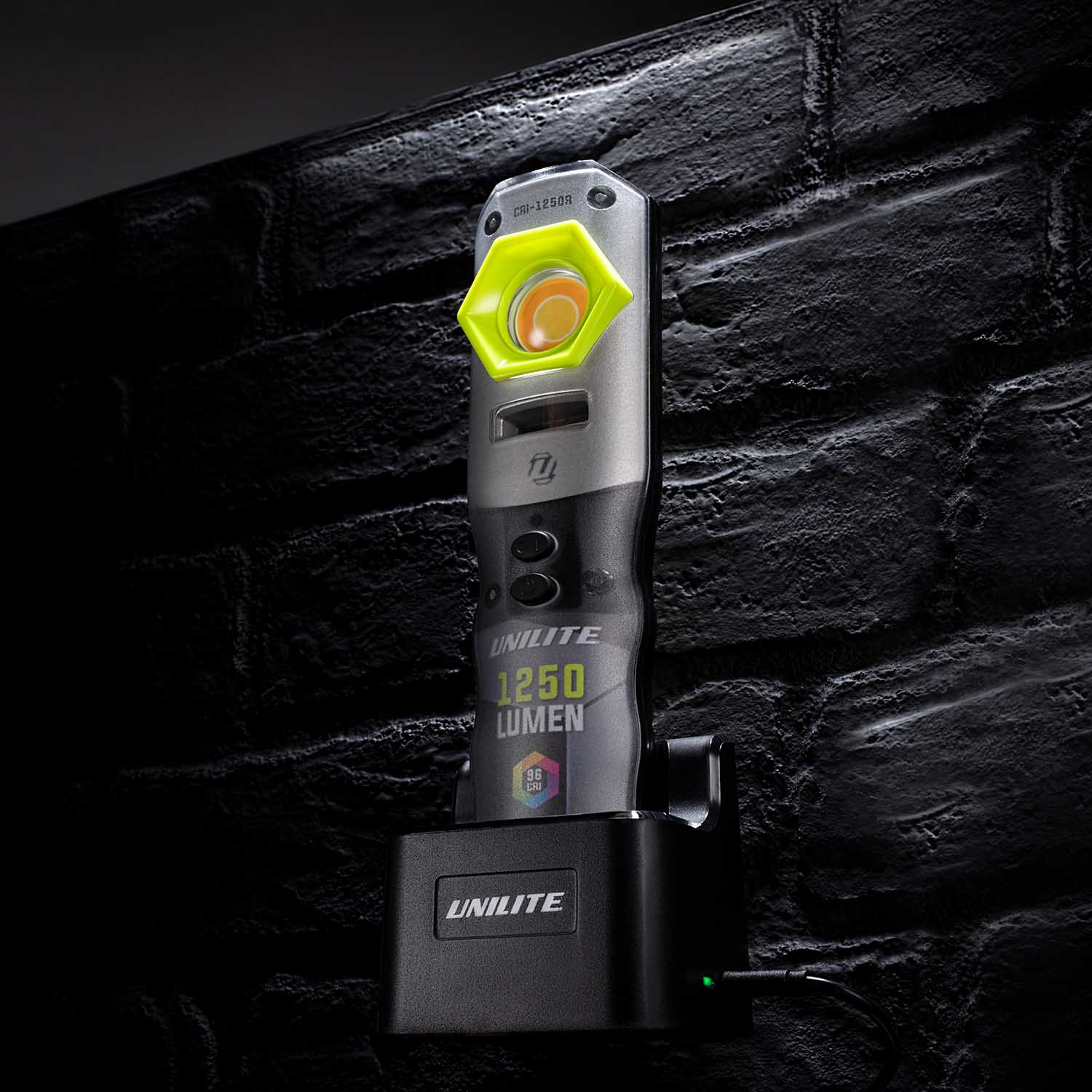 Mocna latarka inspekcyjna CRI-1250R o mocy 1250 lumenów z wbudowanym akumulatorem. 3 kolorowe diody o wysokim współczynniku oddawania barw naturalnych CRI  96+ umożliwiają perfekcyjne dobranie właściwego odcienia koloru. Oprócz głównej diody COB LED, CRI-1250R została wyposażona w górną latarkę inspekcyjną o mocy 250 lumenów i lampę UV LED (385nm). Lampa posiada bardzo mocne magnesy z tyłu i w podstawie, dzięki czemu możemy ją przytwierdzić do każdej metalowej powierzchni. Wysuwany obrotowy haczyk umożliwia zawieszenie jej w dowolnej pozycji. Urządzenie jest wodoszczelne i pyłoodporne według standardów IP65. Mocny akumulator 5000 mAh może również posłużyć jako powerbank USB. Mocna latarka inspekcyjna CRI-1250R  posiada szybkie ładowane poprzez kabel USB-C.