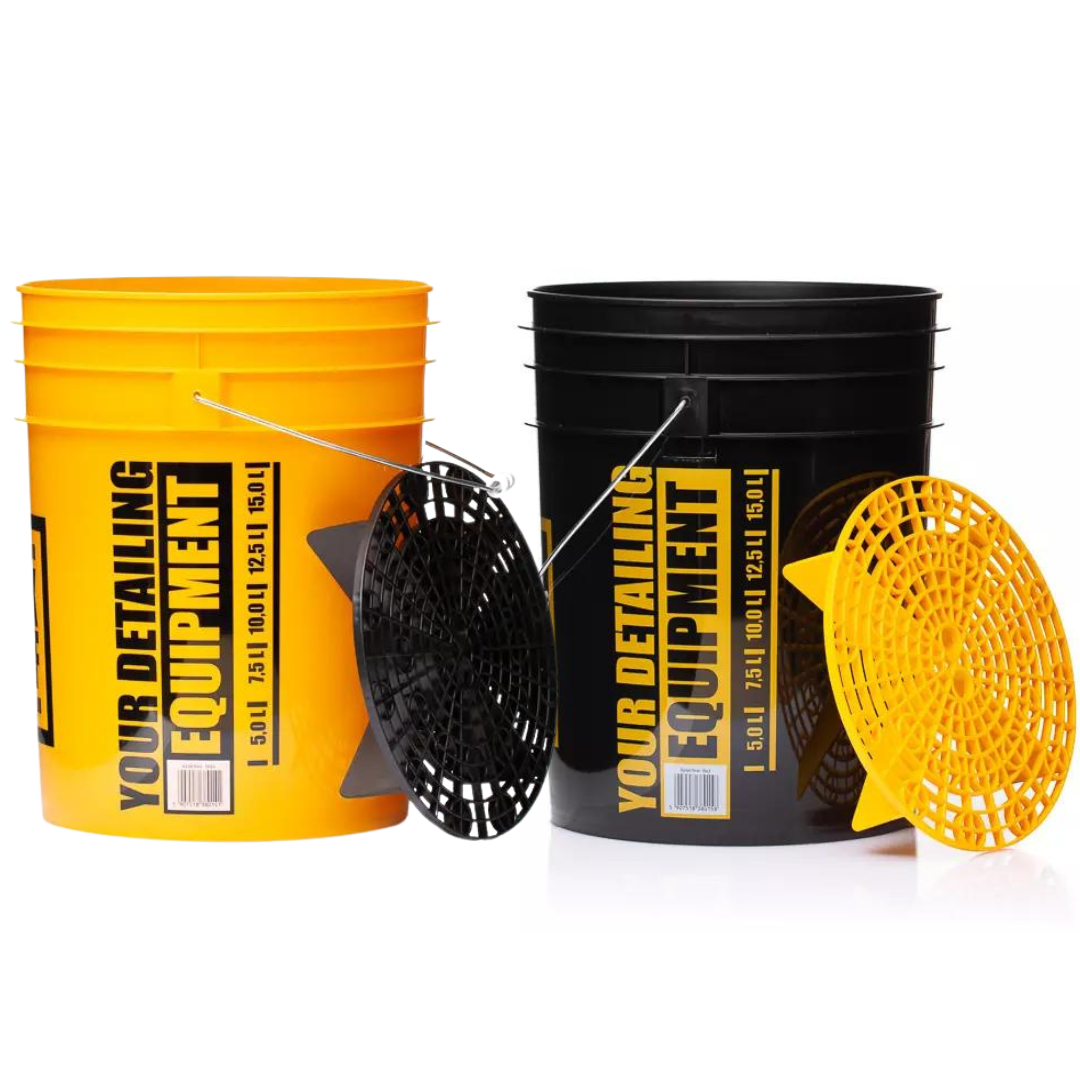 WORK STUFF Zestaw Wiader z separatorami to zdecydowanie najlepsze na rynku, profesjonalne wiadra polskiego producenta. Są wykonane z grubego tworzywa HDPE, które zapewnia niezawodną sztywność i wytrzymałość. Metalowa rączka jest odporna na oberwanie się, wygodnie leży w dłoni i nie wpija się podczas przenoszenia nawet bardzo dużej ilości płynu. Nadrukowana miarka pozwala na precyzyjne wyliczenie proporcji rozcieńczania specyfików do mycia i pielęgnacji auta.